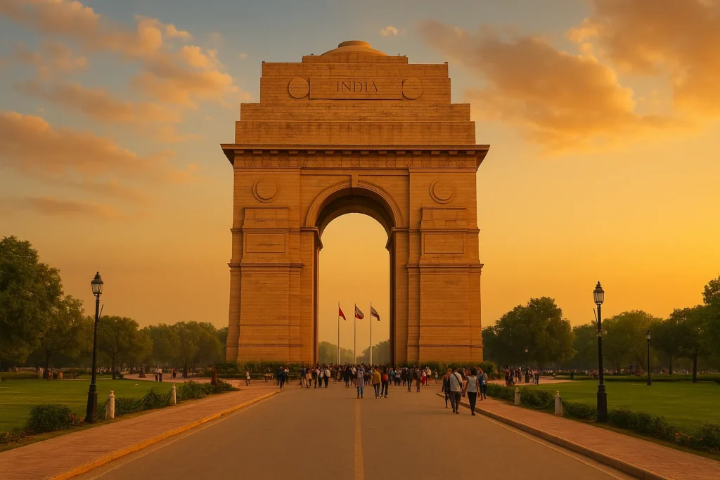 India Gate, Red Fort, Qutub Minar, Humayun’s Tomb, Lotus Temple, Akshardham Temple, Rashtrapati Bhawan, Lodhi Garden, Jantar Mantar, and Chandni Chowk.