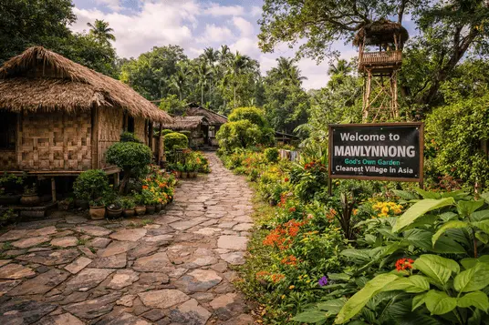 Visitors can experience traditional Khasi lifestyle and enjoy local food. The beauty and simplicity of Mawlynnong make it a must-visit destination in Meghalaya.